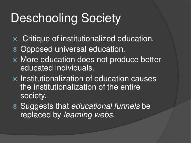 Ivaln Illich replace the schools as a large knowledge bank by echonological institution in which everyone would have credit.